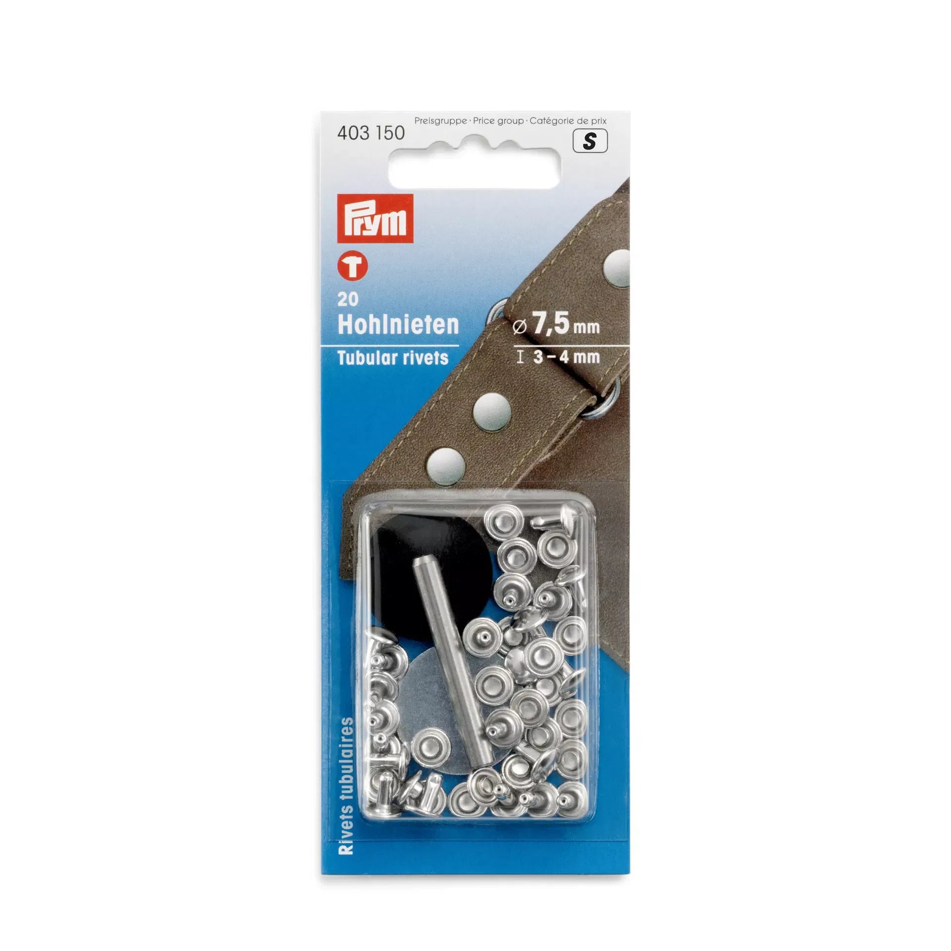 Remaches tubulares, 3-4mm, plateado, 20 piezas
